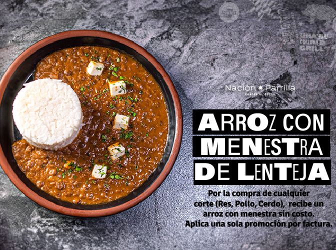 Por la compra de cualquier corte (pollo, cerdo o res) recibe un arroz con menestra de lentejas totalmente GRAT...