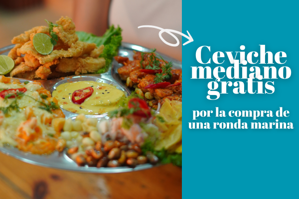 Por la compra de una ronda marinera, recibe un ceviche mixto mediano Gratis
