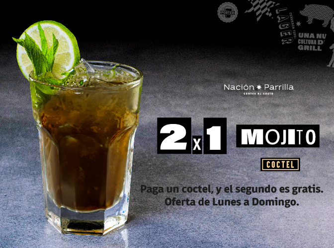 Al comprar un Mojito Cubano en Nación Parrilla, recibe otro Totalmente Gratis.